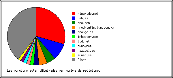 (Anar a: Inici | Informe General | Informe Mensual | Resum Diari | Resum Horari | Informe de Dominis | Informe d'organitzacions | Informe de llocs Remitents | Informe de peticions buscades | Resum de Navegadors | Informe de sistema operatiu | Informe de codis d'estat | Informe del tamany de documents | Informe de Tipus de Fitxers | Informe de Col·leccions | Informe de Documents)