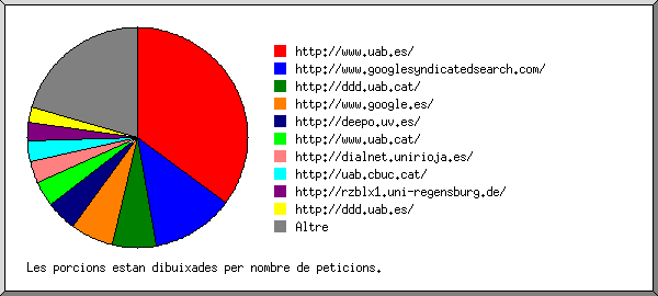 (Anar a: Inici | Informe General | Informe Mensual | Resum Diari | Resum Horari | Informe de Dominis | Informe d'organitzacions | Informe de llocs Remitents | Informe de peticions buscades | Resum de Navegadors | Informe de sistema operatiu | Informe de codis d'estat | Informe del tamany de documents | Informe de Tipus de Fitxers | Informe de Col·leccions | Informe de Documents)