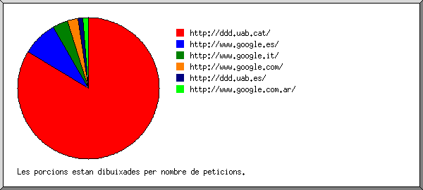 (Anar a: Inici | Informe General | Informe Mensual | Resum Diari | Resum Horari | Informe de Dominis | Informe d'organitzacions | Informe de llocs Remitents | Informe de peticions buscades | Resum de Navegadors | Informe de sistema operatiu | Informe de codis d'estat | Informe del tamany de documents | Informe de Tipus de Fitxers | Informe de Col·leccions | Informe de Documents)