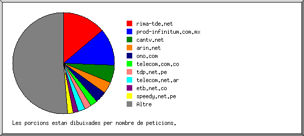 (Anar a: Inici | Informe General | Informe Mensual | Resum Diari | Resum Horari | Informe de Dominis | Informe d'organitzacions | Informe de llocs Remitents | Informe de peticions buscades | Resum de Navegadors | Informe de sistema operatiu | Informe de codis d'estat | Informe del tamany de documents | Informe de Tipus de Fitxers | Informe de Col·leccions | Informe de Documents)