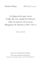 32 p, 1.3 MB La disposición que envía Felipe III a la ciudad de Valencia sobre la muerte de la reina Margarita de Austria (1584-1611) / Plastić, Paula (University of Adelaide (Adelaide, Austràlia))