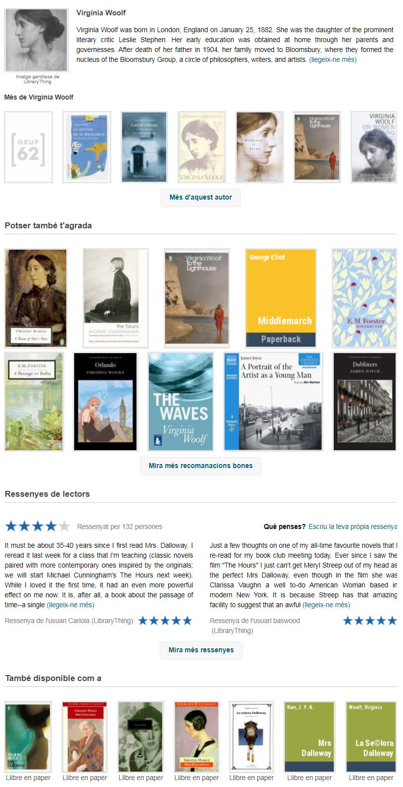 Syndetics Unbound a més d’oferir la imatge de les cobertes, els sumaris i els resums, també mostra altres informacions complementàries com: