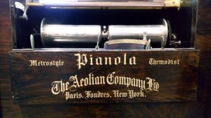 La Biblioteca d’Humanitats en col·laboració amb el Grup de Treball “Les Músiques de Reproducció Tecnològica” del Departament d’Art i Musicologia de la UAB ens va oferir la possibilitat de veure una pianola en el hall de la Biblioteca d’Humanitats així com diferents materials bibliogràfics, publicitat de diferents diaris i catàlegs promocionant models de pianola.