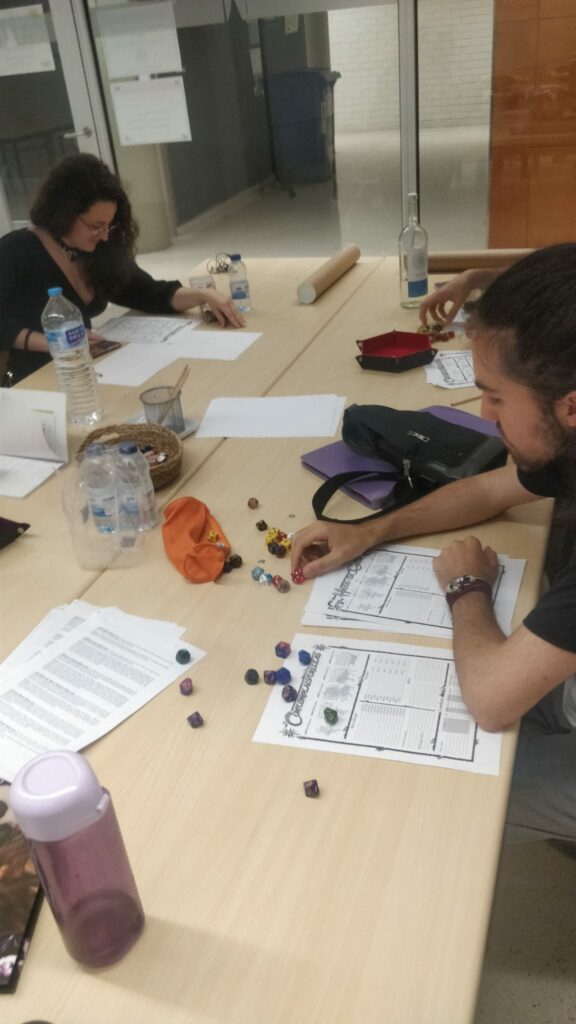 I ara us parlem de les partides… s’han fet 33 partides en total, cadascuna amb un nombre d’entre 3 i 6 participants. Els jocs o sistemes escollits han estat molt variats: hi ha hagut lloc per a clàssics del rol del segle XX (Dungeons & Dragons, The Call of Cthulhu, Traveller), jocs que han triomfat en els últims anys (Pathfinder, El Anillo único), sistemes que han modernitzat els clàssics (Dungeon World, Pulp Cthulhu) i propostes alternatives i poc convencionals (Sexy Battle Wizards, Obachan panic!). Hem tingut fantasia (Mausritter, Talisman Adventures), folklore (Aquelarre, Werewolf), terror (Mörk Borg, Vaesen), ciència-ficció (Nexus, Cyberpunk)… Hem viatjat a l’univers de Harry Potter (Hogwarts), al de l’escriptor Brandon Sanderson (Mistborn) i al dels videjocs de Zelda (Reclaim the wild). Fins i tot una màster va dirigir una partida amb un sistema inventat per ella (La porta negra).