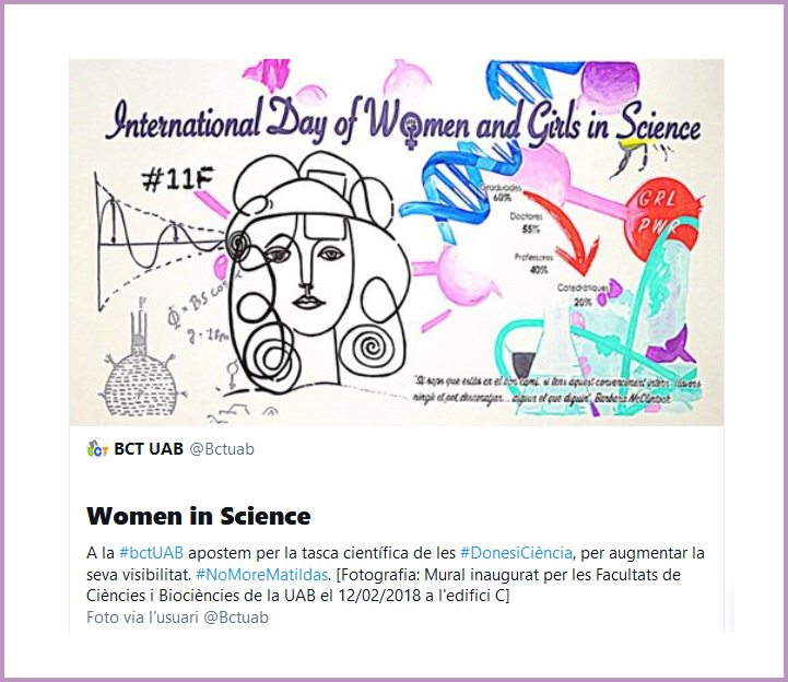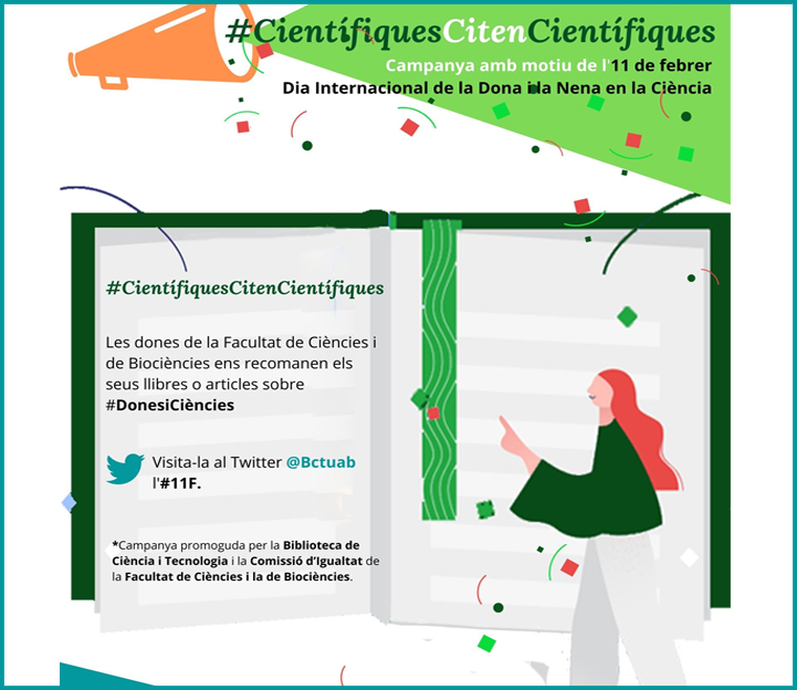 L’onze de febrer és el Dia Internacional de la Dona i la Nena en la Ciència i, per commemorar-ho, la Biblioteca de Ciència i Tecnologia i les Comissions d’Igualtat de la Facultat de Ciències i de la Facultat de Biociències han programat la campanya #CientífiquesCitenCientífiques a través del compte de Twitter @Bctuab.