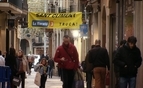 Mercè Riera -Mercè Sampietro- i Ferran Rañé -Rafel Aubia- passegen per un Sant Climent ambientat amb la pancarta de La Marató