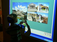 L@s niñ@s buscan lo que deseen, por ejemplo, características de dinosaurios, “cosas de Roma”,… Lo buscado lo aprovechamos para hacer descripciones, trabajar la expresión oral, contamos, repasamos figuras...