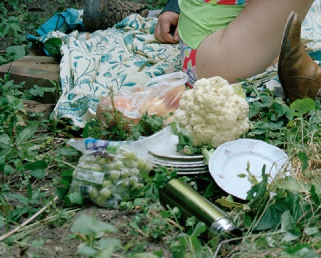 La recreación de Le déjuner sur l’herbe de Sheila y sus amigos no es una fotografía de aficionado. Lee Towndrow es un gran profesional que trabaja para grandes revistas y agencias, con numerosos premios profesionales en su haber. La calidad de la misma se puede observar en todos los detalles, aunque solo quiero apuntar uno: la naturaleza muerta que se encuentra en el suelo a la izquierda, en primer plano ante el anca de Sheila.