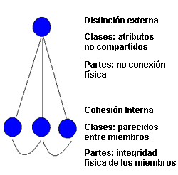 «Up to a point, this is plausible: in both cases, sub-division is carried out in such a way as to create elements in which two parameters are maximised, namely, internal cohesiveness and external distinctiveness. In the case of classes, cohesiveness consists in degree of resemblence between members; in parts, cohesiveness is to be interpreted as physical integrity. Distinctness in classes means unshared attributes; in parts it means unconnectedness».
