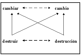 relaciones puede ser establecida, de forma transcategorial entre nombres y verbos. En la fig.