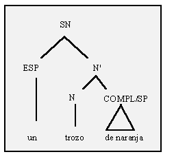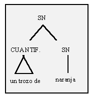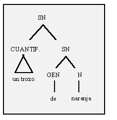 formando un análisis del tipo [ADJUNTO 'un trozo de' [SN 'naranja]] -ver fig. V.3-.