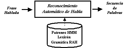 El proceso de reconocimiento automático de habla tiene como función obtener la secuencia de palabras asociada a la frase en lenguaje natural (LN) de entrada. La frase es pronunciada por el locutor de forma continua, es decir, sin pausas entre las palabras, y a menudo, tiene problemas de agramaticalidad, incluye elementos propios del habla espontánea como son las interjecciones, falsos comienzos, repeticiones, etc. El sistema de reconocimiento de habla, por su parte, presenta problemas de cobertura léxica y sintáctica (estructural). Por todo ello, la tarea del sistema de reconocimiento de habla no es sencilla, y además, es costosa, tanto en memoria como en cálculo.