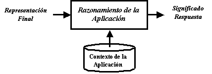 Se puede considerar la última etapa en el proceso de compresión. Utiliza la Representación Final de la frase y el Contexto de la Aplicación para conseguir una respuesta del sistema a la frase de entrada. El proceso de razonamiento que se produce depende de la propia aplicación: sistema de obtención de información de bases de datos, sistema de control, sistema de síntesis o resumen de historias, etc. Cada aplicación utiliza el razonamiento más adecuado para la tarea (p.e. Semántica Procedimental para traducir a SQL desde la Representación Final de la frase, etc.).