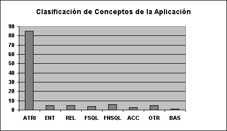En la gráfica de la figura 3.2 puede observarse 8 clases de conceptos (taxonomía de conceptos), que a nuestro juicio, modelan los distintos elementos de la ontología de una aplicación, o por lo menos, los más relevantes. Estos conceptos son los que intervienen directamente en el diseño de los distintos módulos que dan lugar a la arquitectura implementada.