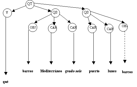 Fig. 6.16 En él se puede observar cómo la única consulta que existe se modifica, dándo lugar a una nueva consulta básica que además será completada para poder ser interpretada correcatmente por el Módulo de Traducción a SQL.