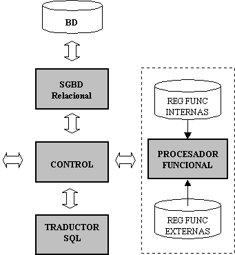 Fig. 6.22 Diagrama de bloques que muestra el módulo de Proceso de Funciones y su interrelación con otros módulos de la arquitectura del Sistema de Comprensión.