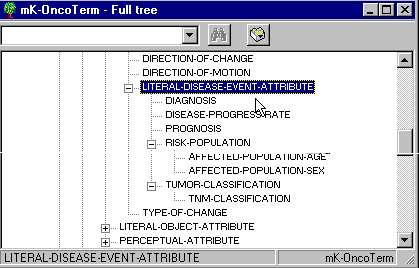 La categoría conceptual que actualmente cuenta con mayor número de attributes es disease-event, todos ellos aplicables a have-neoplasm. Veamos, mediante dos capturas de pantalla, los attributes tanto escalares como literales que le corresponden: