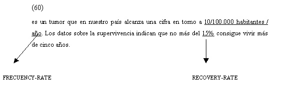 En la definición de cáncer gástrico nos encontramos con los siguientes datos, fácilmente reconocibles como pertenecientes a la categoría ontológica de attribute por la explicitación de cifras, además de por su contenido conceptual: