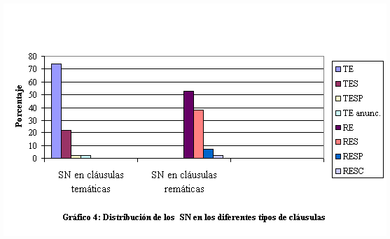 Cuadro 5: Distribución de los SN en los diferentes tipos de cláusulas