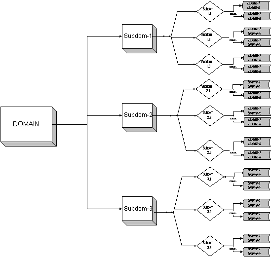 Cada uno de estos dominios léxicos se podrían representar en un diagrama estructural como el siguiente: