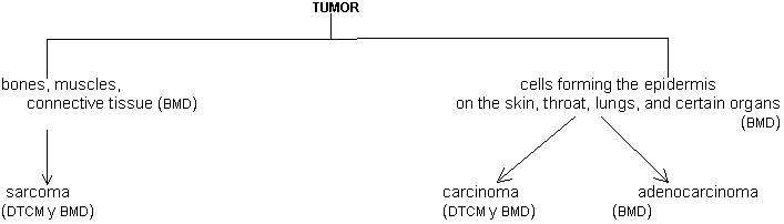 En cuanto a los diccionarios especializados, éstos contienen una información más detallada pero con frecuencia no se presenta siguiendo la estructura convencional de la definición. La entrada 'cancer'/'cáncer' recogida en el Black's Medical Dictionary (BMD) y el Diccionario Terminológico de Ciencias Médicas (DTCM) permite extraer, a grandes rasgos, el siguiente esquema a partir de una etiqueta conceptual común 'malignant tumor'/'tumor maligno':