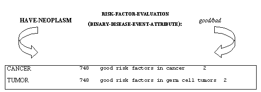 El atributo RISK-FACTORS-EVALUATION (BINARY-DISEASE-EVENT-ATTRIBUTE) se ha definido como:
