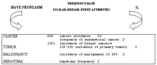 (127) a. FREQUENCY-RATE of HAVE-NEOPLASM