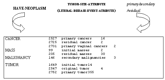 El atributo TUMOR-SITE-ATTRIBUTE (LITERAL-DISEASE-EVENT-ATRIBUTE) se ha añadido a la ontología para reflejar la siguiente clasificación: