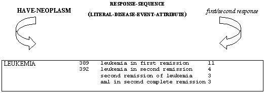 En todos los casos encontrados, el concepto de RESPONSE-SEQUENCE se formaliza a través del término 'remission', como se puede observar. Las estructuras sintácticas de los FT responden a los patrones: