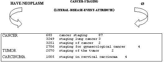 El atributo CANCER-STAGING se ha añadido como LITERAL-DISEASE-EVENT-ATTRIBUTE dado que estos sistemas son bien literales o alfanuméricos, caso que se trata bajo la categoría de literal. La definición de este atributo sería la siguiente: