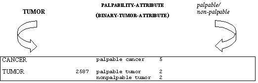El atributo binario PALPABILITY-ATTRIBUTE (BINARY-TUMOR-ATTRIBUTE) se ha definido como:
