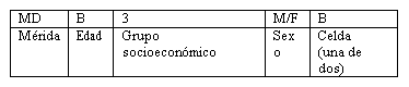 3 Este código refiere al hablante en el corpus sociolingüístico de Mérida, publicado en Domínguez y Mora (1998). El código se explica como se señala a continuación: