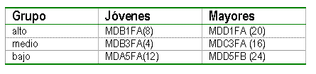 62. Elegimos a estas hablantes para garantizar que pertenecieran a tres grupos socioeconómicos, alto, medio y bajo (lo que está señalizado con los números 1, 3 y 5 de la sigla); que pudieran agruparse en dos grupos de edad, más jóvenes (señalizadas con las letras A y B) y mayores (señalizadas con las letras C y D). Esta distribución nos permite observar los diferentes sectores del espacio social representado por el corpus y puede verse en el cuadro siguiente: