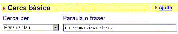 El catàleg via WEB de les biblioteques de la UAB permet trobar documents sobre dret informàtic i matèries relacionades, escrivint a la casella Paraula clau de matèria les següents combinacions de paraules: