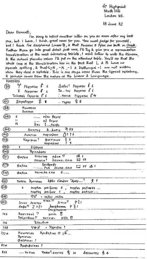 Carta Manuscrita de M. Ventris
