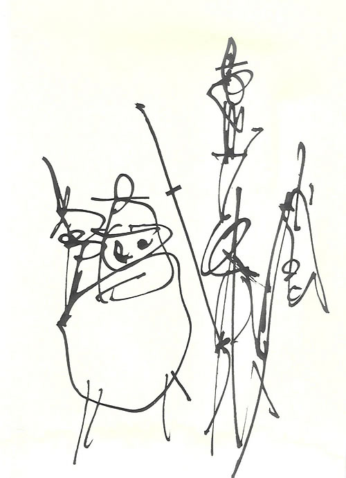 Las composiciones y dibujos de Antonio Saura (1930-1998), en la línea del neofiguracionismo, consiguen emocionar, pues llega a identificarse con los personajes e incluso con el paisaje que representa. Su visión busca la destrucción o la distorsión del objeto, someterlo a una cierta violencia gestual para que aparezca su mas honda esencia. Su gran conocimiento de la obra y de sus posibilidades expresivas le permiten reinventarla en clave espiritual en cada una de sus ilustraciones.