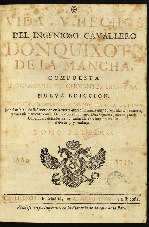 Cervantes Saavedra, Miguel de / Vida y hechos del ingenioso hidalgo don Quixote de la Mancha . -- . -- .-- Madrid : Antonio Sanz, 1735 . -- 2 v., 4º
