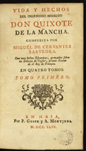 Cervantes Saavedra, Miguel de / Vida y hechos del ingenioso cavallero don Quixote de la Mancha . -- . -- .-- Madrid : Manuel Martín, 1765 . -- 4 v., 8º