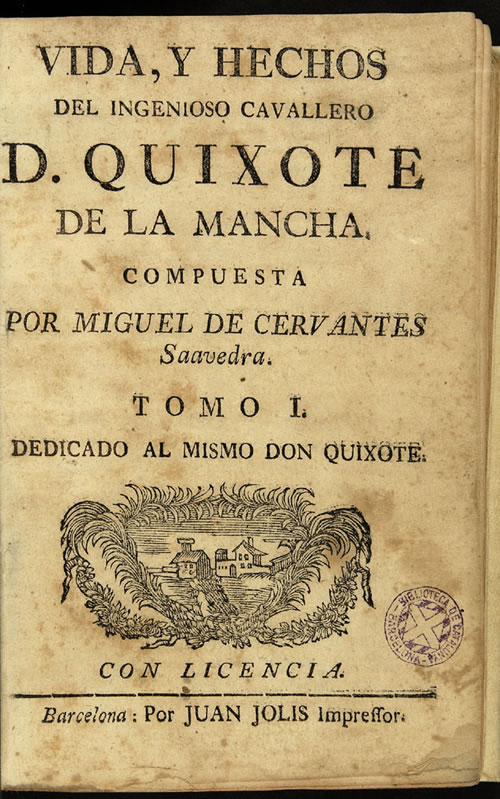Cervantes Saavedra, Miguel de / Vida y hechos del ingenioso cavallero don Quixote de la Mancha . -- . -- .-- Barcelona : Juan Jolís, 1755 . -- 4 v., 8º