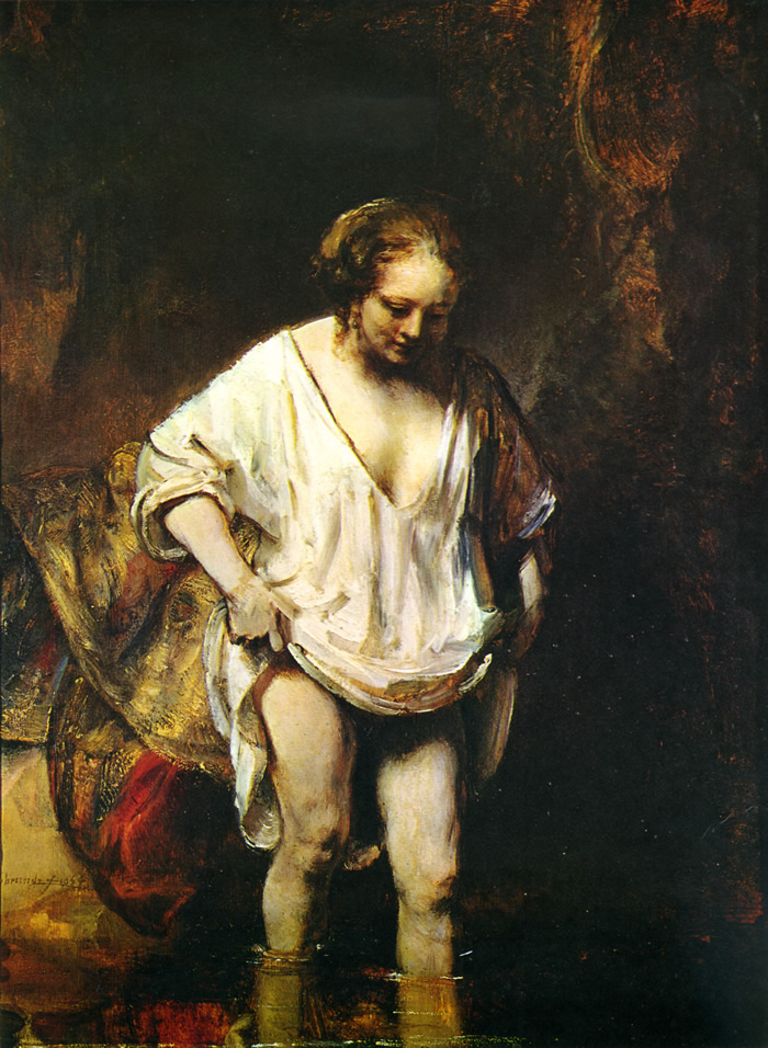 Noia banyant-se en un rierol