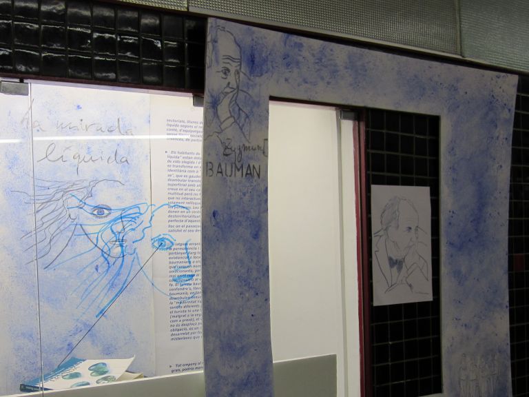 Dibuix original de Josep Vicens Vista de l'exposició presencial Detall de l'exposició Alguns documents exposats
