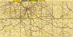 Els tres exemples dels fulls del Mapa itinerario 1:200 000: a l’esquerra, l’edició actualitzada de 1890; al centre el full republicà; a la dreta, el full franquista.