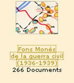 El segon bloc correspon al que l’ICC ha anomenat Fons Monés. El Fons Monés agrupa la cartografia realitzada per les tropes voluntàries italianes que van lluitar a la Guerra Civil d’Espanya en ajuda del general Franco. Constitueix una font de gran vàlua per entendre com s’utilitzava la cartografia en el front. El fons procedeix de la col·lecció particular del Sr. Josep Monés i conté mapes manuscrits i impresos i fotografies aèries que les tropes italianes van utilitzar en els fronts de Madrid, del País Basc i de l’Ebre i que fou realitzada majoritàriament per la Sezione Topocartografica del Corpo Truppe Voluntaria (C.T.V.). Està format per 5 capses amb 113 documents, 8 carpetes amb 157 documents i 50 fotografies.