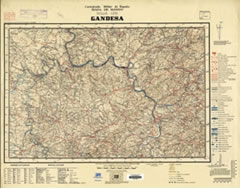 El Centro Nacional de Información Geográfica inclou a la seva col·lecció històrica del Mapa Topográfico Nacional 1:50 000 les diferents edicions publicades d’aquesta sèrie entre el 1936 i el 1939. Els mapes de la guerra civil no constitueixen un grup diferenciat de documentació, si no que es recuperen en el moment de cercar un full en concret. A la dreta, un exemple d’un dels fulls 1:50 0000, editat el 1937. (Mapa propietat de l’ IGN)