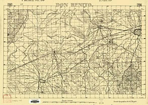 Zona de maniobres de distracció a l’àrea d’Extremadura: Don Benito (Badajoz). Mapa editat el 1937 per l’exèrcit franquista |