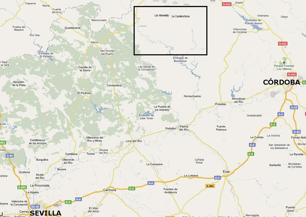 Zona de la Cardenchosa, entre les províncies de Sevilla i Còrdova. Mapa de 1929 utilitzat per l’exèrcit franquista