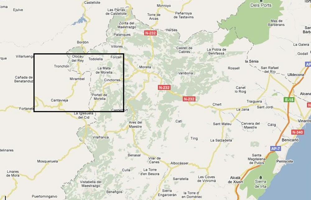 Zona del Forcall, pròxima a Morella, i part del corredor dels franquistes al mar. Mapa editat per l’exèrcit franquista el 1938