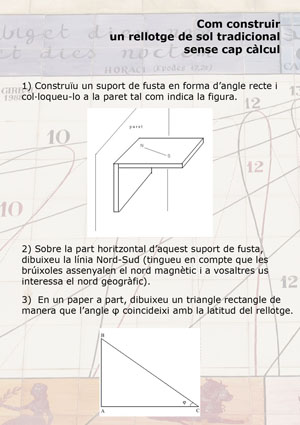 Explicar què és i com funciona un rellotge de sol de manera assequible per a tothom que s’acosti a la Biblioteca. Aquesta és la principal motivació de l’exposició, a partir principalment dels texts explicatius preparats pel professor Joan Girbau, gran coneixedor de la matèria.