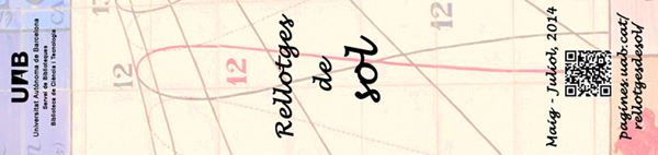 Finalment, i per cridar l’atenció sobre l’exemplar que tenim a l’edifici de la facultat, parlem una mica (a l’expositor petit) sobre el rellotge de sol de la UAB, construït el 1988 pel professor Girbau, i del qual teniu editat un llibret commemoratiu.