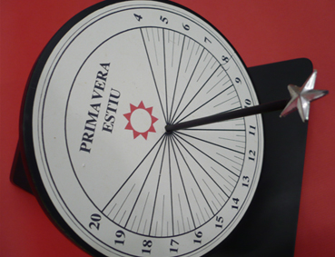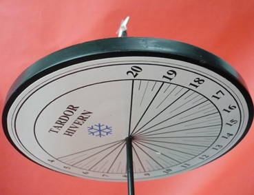 Un cop orientat correctament, de Nord a Sud, l’hora la marcarà el raig de sol que passi pel forat del gnòmon (en aquest cas amb la cara de l’astre solar).